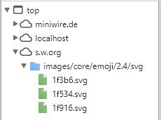 Hier liegt noch einmal ein Bild mit den Quellen die geladen werden. Das einzige was von einer externen Quelle runtergeladen bzw. bereitgestellt wird sind die Emojis, die manchmal zu sehen sind. „s.w.org“ ist eine Seite der WordPress Foundation.
